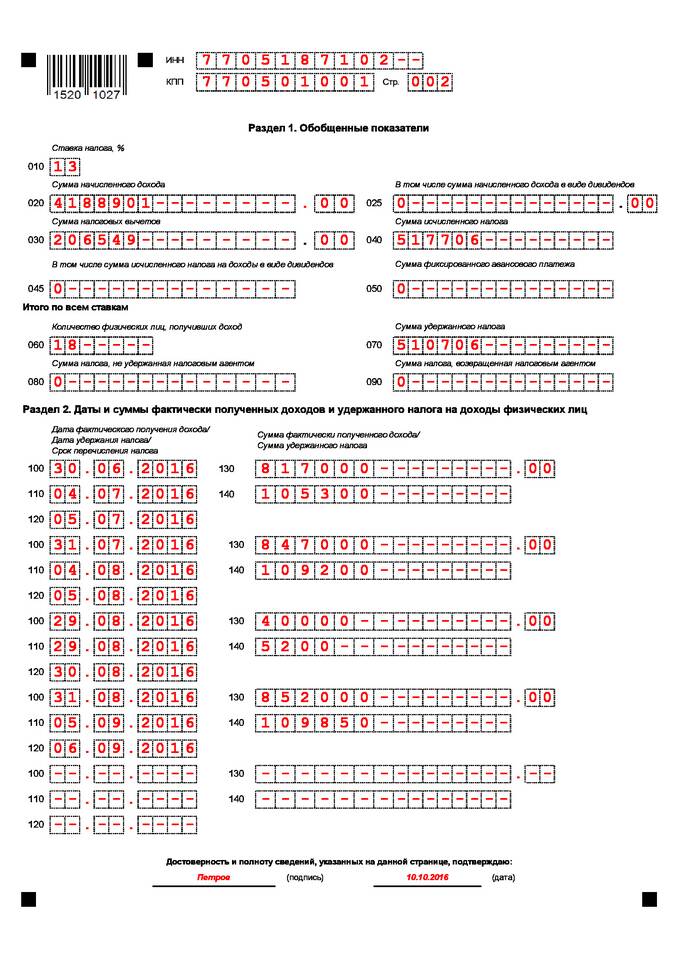 Раздел 2 | Детализированные данные по датам выплат и удержаний |