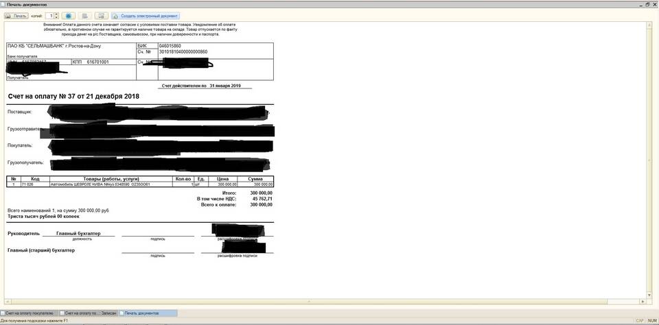 - Откройте нужный документ (счет-фактура, акт, накладная)