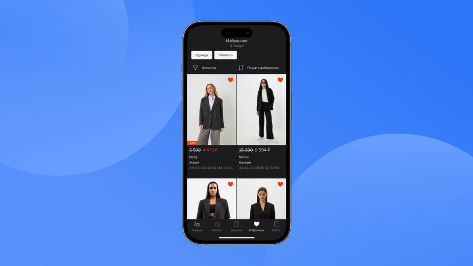 - Сортировка по категориям (одежда, обувь, аксессуары)
