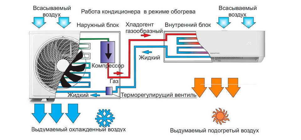 - Вентилятор прогоняет воздух через холодный теплообменник