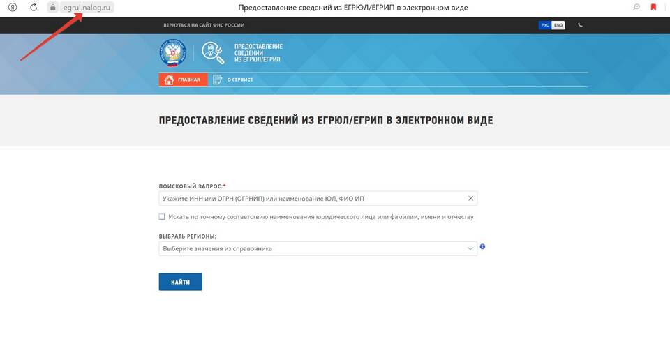 - Откройте сервис egrul.nalog.ru