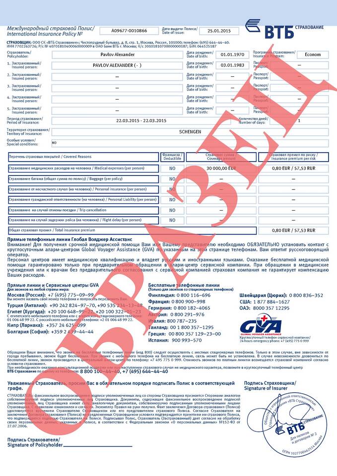 Лицевая сторона | Основные данные: номер, срок действия, страхователь |