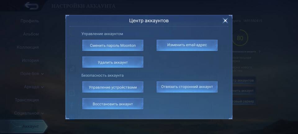 - Привязка к учетной записи Moonton