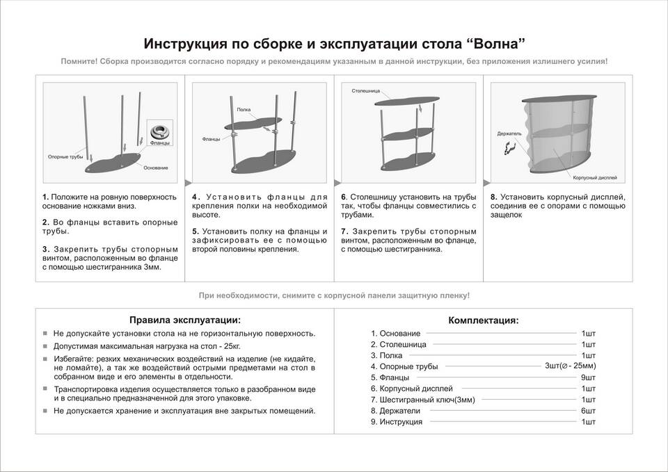- Проверьте комплектацию по списку деталей
